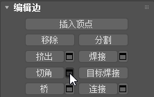 7. 在“编辑边”卷展栏中,单击“切角”按钮右侧的 “设置”按钮。