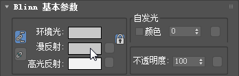 “Blinn”是以计算机图形的先驱者 James Blinn 名字命名,它是“标准”材质默认使用的明暗器类型。明暗器决定材质与光线的交互方式。并且“漫反射”是指基本材质颜色。您可以在 3ds Max 帮助中找到有关明暗器和常规材质的更多信息。