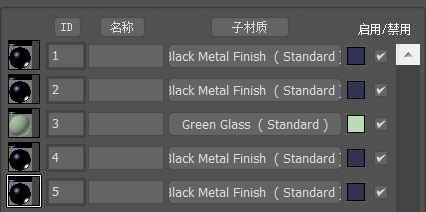 在“多维/子对象基本参数”卷展栏中,您可以单击并访问每种材质。