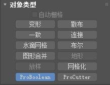 4. 在“对象类型”卷展栏上,单击激活“ProBoolean”。