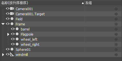 稍后,将出现显示“帧”的工具提示,这表示您的选择工具悬停在“帧”对象上。在此场景中,帧为大炮的父对象,表示如果帧移动,则其他大炮集合会与它一起移动。
