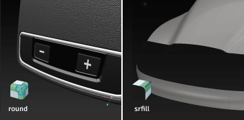 “Surface Fillet”工具可在设计的主曲面之间构建受控过渡。“Round”用于“完成”具有细节圆角的锐边模型。