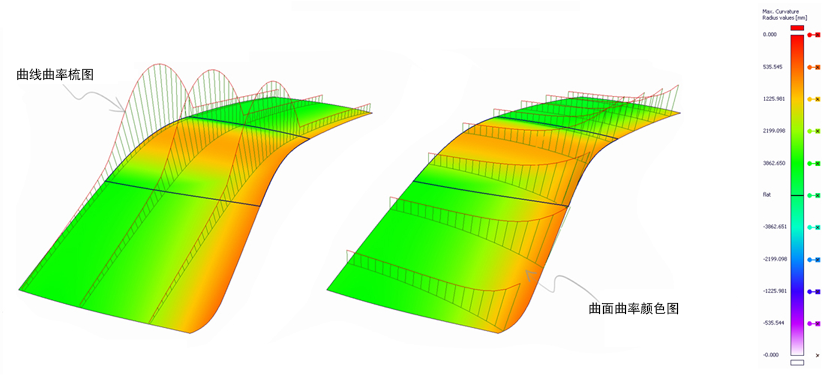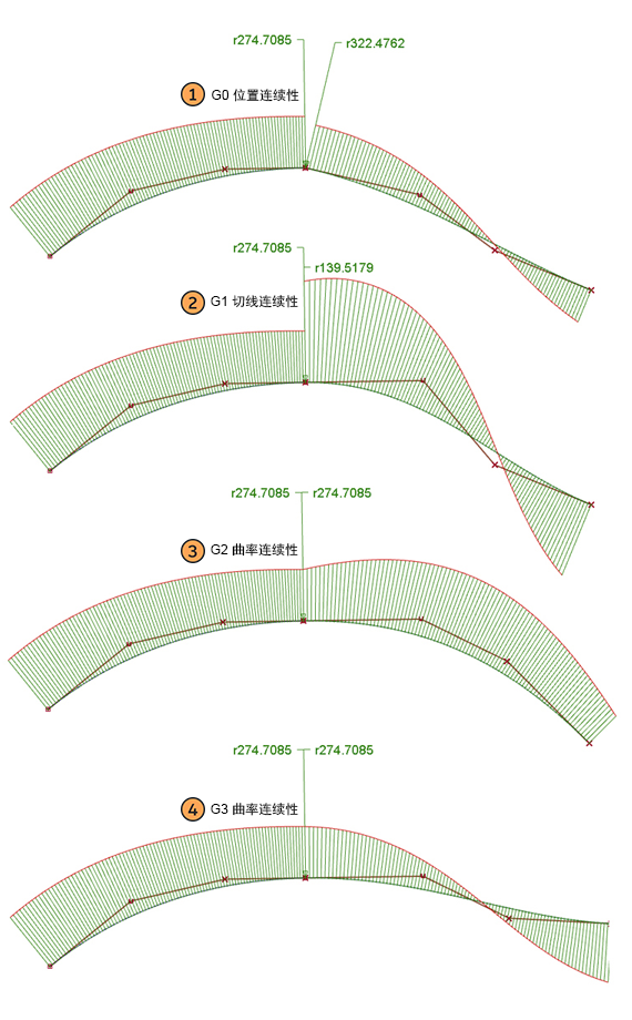 曲率梳图可用于评估两条相邻曲线或曲面之间的连续性。