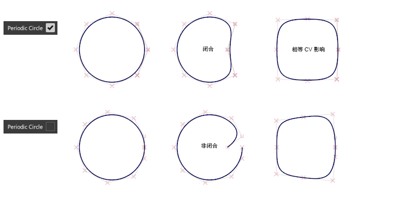 周期性是指开放几何体与闭合几何体之间的差异。例如,可以通过两种方式创建圆形曲线: