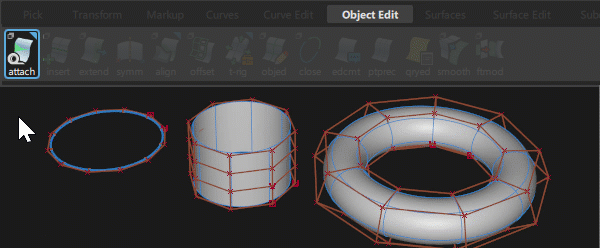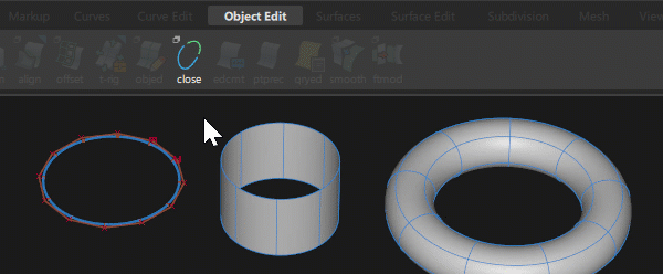 Open/Close 工具可开放闭合几何体以及闭合开放几何体。CV 数保持不变,但跨距数会减少,从而使形状发生变化。