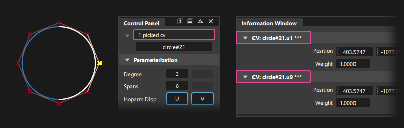 周期性几何体的一些 CV 在“Information Window”中显示为双 CV,但这只是一种技术表示。
