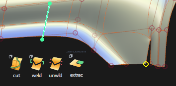 使用“Cut”、“Weld”和“Extract”工具修改拓扑流。