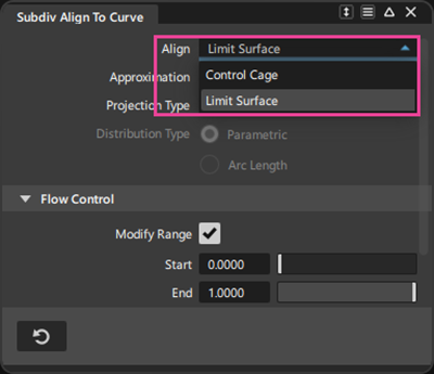 此功能在“Subdiv Reform”和“Subdiv Align to Curve”工具中提供。