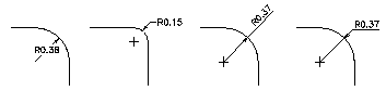 Different types of radial dimensions are created depending on the size of the circle or arc, the TextPosition property, and the values in the DIMUPT, DIMTOFL, DIMFIT, DIMTIH, DIMTOH, DIMJUST, and DIMTAD dimension system variables. (System variables can be queried or set using the GetVariable and SetVariable methods.)