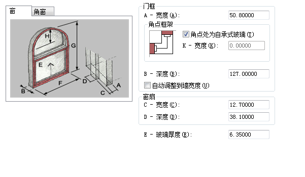 单击常规窗的“窗”选项卡或角窗的“角窗”选项卡。