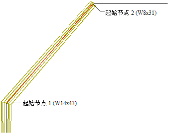 使用以下步骤可以通过为刚架杆件的第二个线段指定不同的起点和终点造型,以创建该刚架的第一个梁。