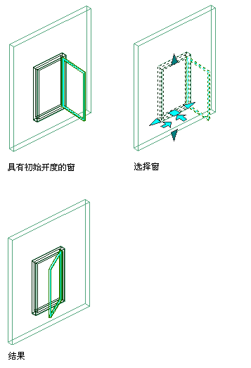 使用以下步骤可以修改窗或窗编组的开启角度或开洞比例。