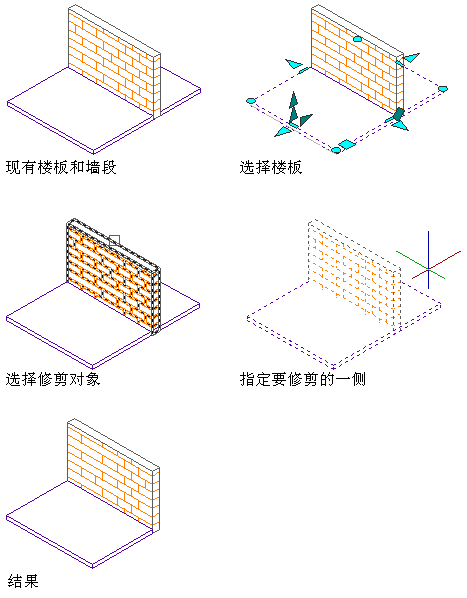 只要修剪对象在当前用户坐标系 (UCS) 中存在相交投影,那么该对象本身就不需要与楼板或屋顶板相交。但是,修剪平面必须与楼板或屋顶板周界线相交;不能只修剪出挑。