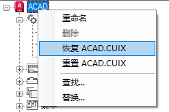 注: 重置时,仅可重置在程序安装位置下的 UserDataCache 文件夹中找到的 CUIx 文件。