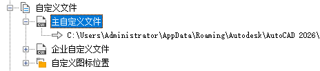 - 在“文件资源管理器”中,浏览并找到<驱动器>:\Users\<用户配置文件名>\AppData\Roaming\Autodesk\<产品名称>\<版本号>\<语言>\support\<自定义文件名>.cuix。