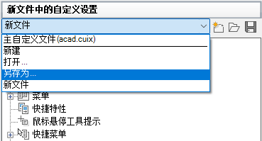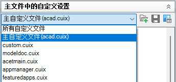 - 从“自定义”选项卡上的“<文件名> 中的自定义设置”窗格的下拉列表中,选择一个 CUIx 文件。