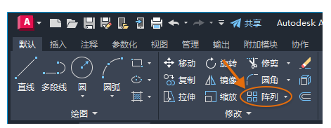 - 依次单击“常用”选项卡 >“修改”面板 >“矩形阵列”。