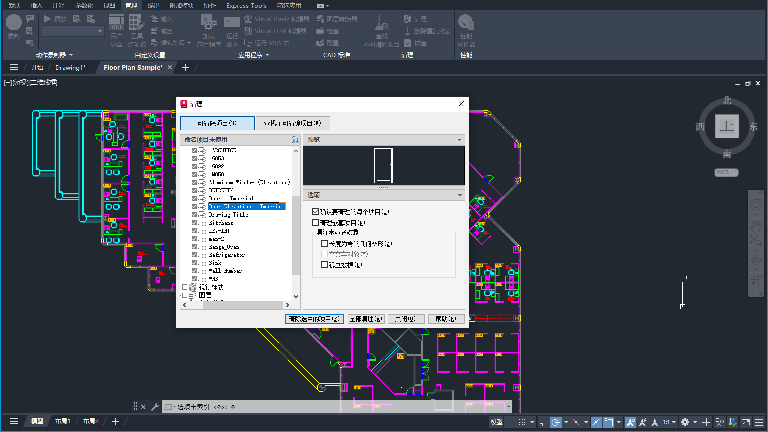 使用 AutoCAD 工具 PURGE 和 OVERKILL 从图形中删除未使用或重复的项目,并保持图形文件整洁有序。