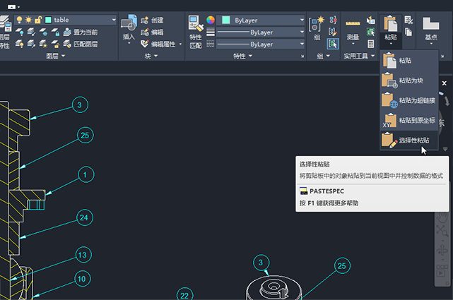 使用剪贴板,即可从其他应用程序将文字、表格和其他信息复制到 AutoCAD 中,或者在布局和图形之间复制文字、表格和其他信息。