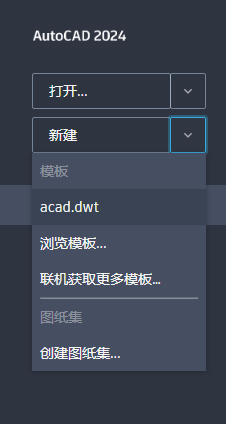 Autodesk 提供了多个随 AutoCAD 一起安装的样板。可以从“样板”下拉列表中的“开始”选项卡访问这些样板。