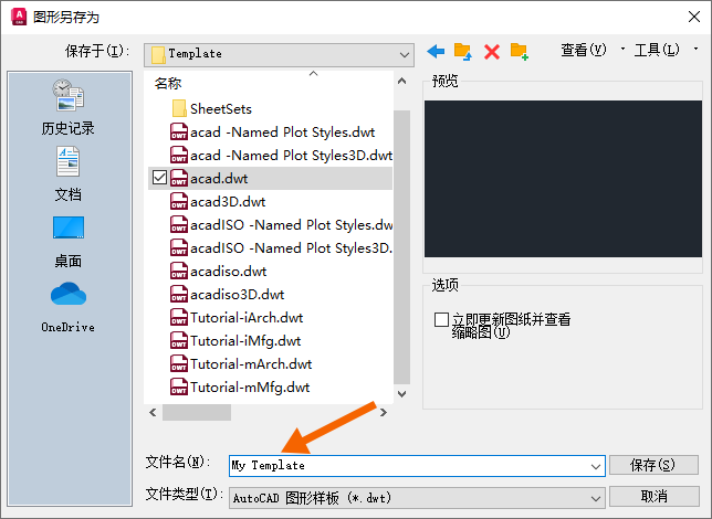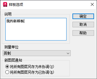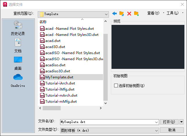 现在,当开始绘制新图形时,AutoCAD 将使用“MyTemplate”。