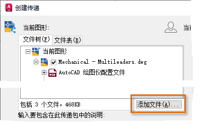 使用电子传递功能时,将扫描当前图形以查找任何参照文件,并在“创建传递”对话框中显示这些文件。