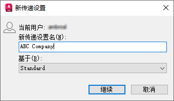 - 在“新传递设置”对话框的“新传递设置名称”文本框中,将默认名称替换为ABC Company。单击“继续”。