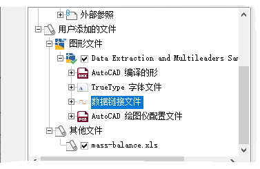 - 按住 Ctrl 键,然后选择 Data Extraction and Multileaders Sample.dwg 和 mass-balance.xls 文件。单击“打开”。