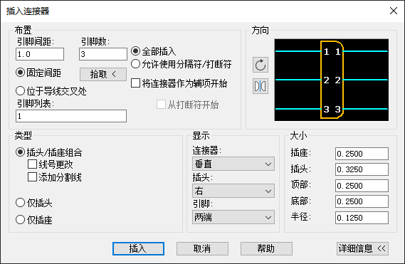 该对话框中将显示迄今已插入的连接器引脚。继续单击“插入下一个连接”,直到放置了九个连接中的六个。