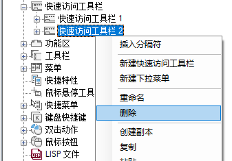 新的快速访问工具栏(称为“快速访问工具栏1”)将置于“快速访问工具栏”节点的底部。