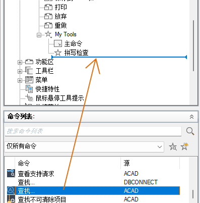- 在“命令列表”窗格下,将要添加的命令或控件拖动到“<文件名> 中的自定义设置”窗格中的下拉菜单。