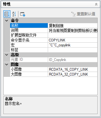 以下样例通过将波浪号 (~) 添加到“名称”特性中值的前面,来禁用“复制链接”菜单项。