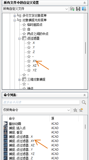 过滤该列表,仅显示用户定义的已添加到加载自定义文件中的命令。