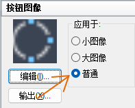 在“按钮图像”窗格中的“应用于”下,选择三个图像指定选项中的一个:“小图像”、“大图像”或“同时应用两者”。然后从图像列表中选择要输入的图像。