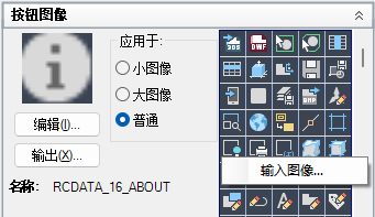 在“按钮图像”窗格中,在图像列表上单击鼠标右键并单击“输入图像”。