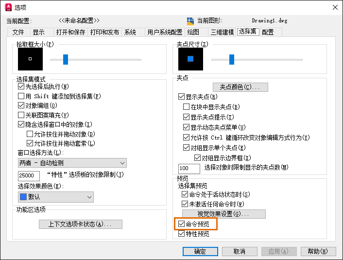 | COMMANDPREVIEW | 控制是否显示特定命令的可能结果的预览。 | 1 | 注册表 |