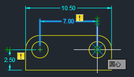 请注意,黄色标记不再显示在标注上。这表示标注现在已与两个圆的圆心相关联。