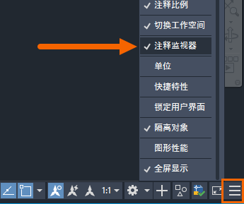 如果未看到“注释监视器”状态栏按钮,请单击位于状态栏最右端的“自定义”