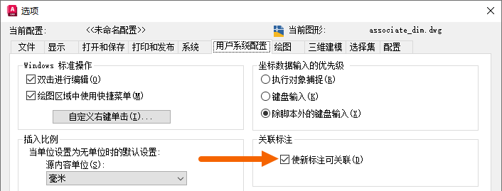 默认情况下,所用新标注都是关联标注。可以在“选项”对话框中进行更改。