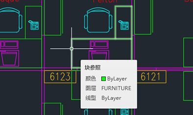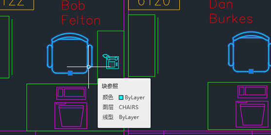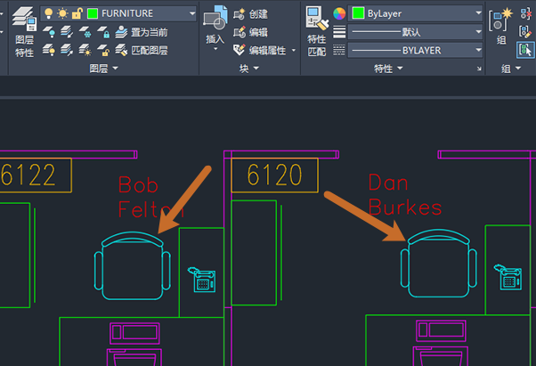 假定您要使用“更改为当前图层”将这些椅子从“CHAIR”图层更改为“FURNITURE”图层。