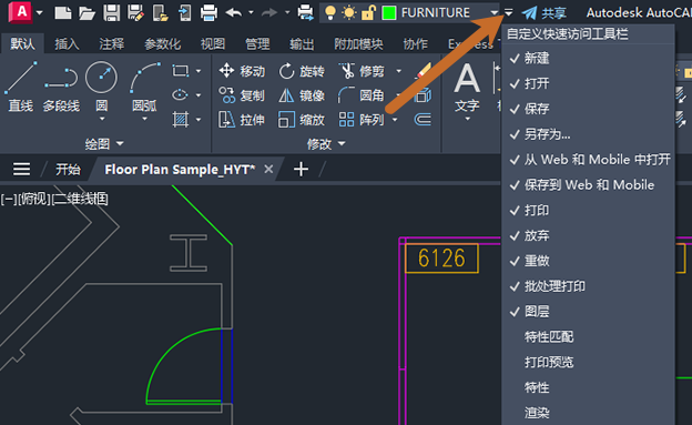 要将“图层列表”控件添加到快速访问工具栏,只需单击快速访问工具栏上的“自定义”下拉列表,然后选择“图层”。