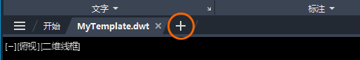 测试对样板所做更改的简单方法是:先保存样板,然后单击图形选项卡上的 + 以创建新图形。保持样板处于打开状态以进行测试,可以非常快速地更改样板。