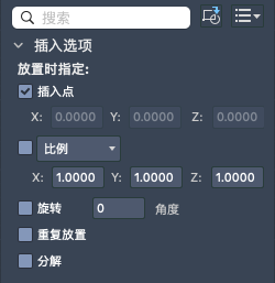 提示: 在大多数情况下,“块”选项板底部的默认选项通常都可接受,但可以试用它们以了解可能要使用的选项。