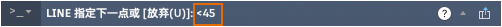 如果需要以指定的角度绘制直线,可以锁定下一个点的角度。例如,如果直线的第二个点需要以 45 度角创建,则在“命令”窗口中输入 <45。