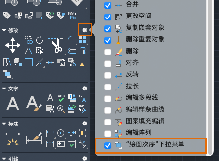 您可以从工具组合中的“修改”面板访问多个绘图次序选项。单击“修改”面板上的
