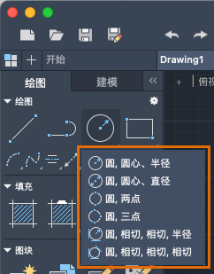 创建基本几何对象,例如直线、圆和图案填充区域。