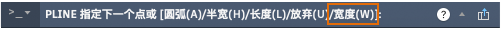 多段线可以具有恒定宽度,或者可以有不同的起点宽度和端点宽度。指定多段线的第一个点后,可以使用“宽度”选项来指定所有后来创建的线段的宽度。您可以随时更改宽度值,甚至在创建新线段时更改。