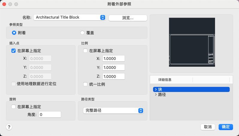 选择完整(绝对)路径、外部参照文件的相对路径或“无路径”、外部参照的名称(外部参照文件必须与当前图形文件位于同一个文件夹中)。