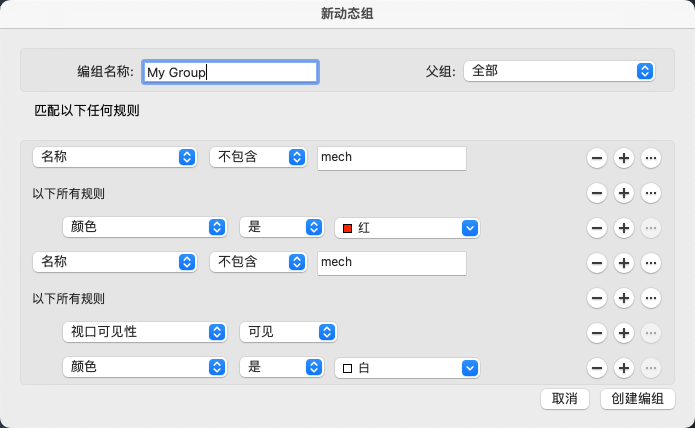 - 图层以“mech”开头 AND 已锁定 AND 为白色