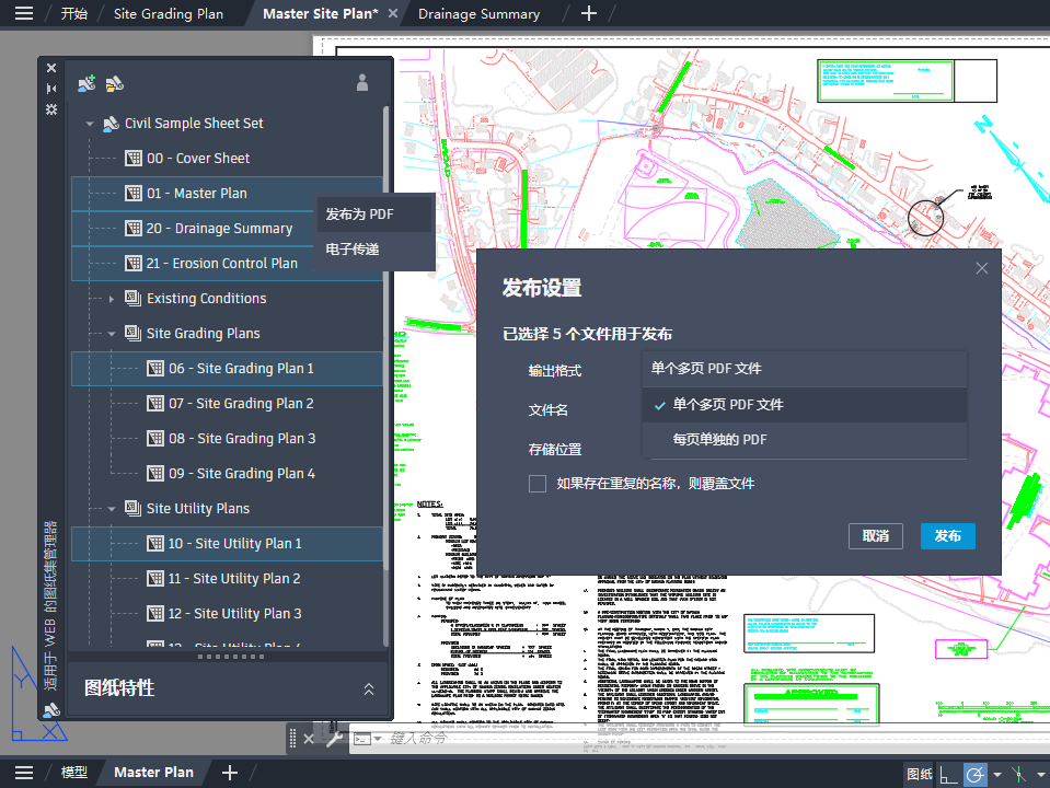 一些更改包括:能够选择多张图纸进行发布、定义如何发布或传递选定图纸、更好地控制 PDF(或电子传递)文件名和位置,以及在发布和电子传递期间覆盖现有文件的选项。